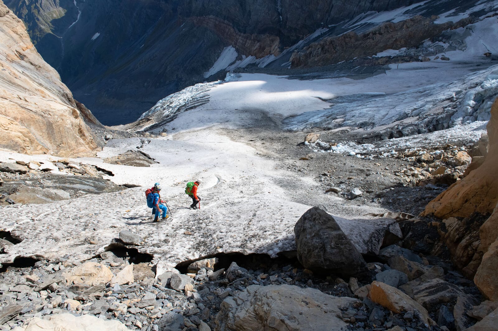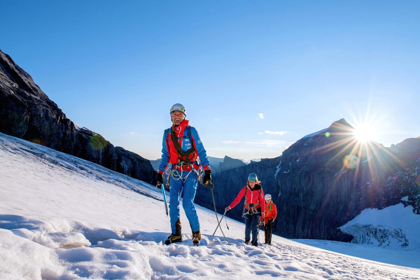 Hochtouren-Erfahrung musst du mitbringen. Die Benutzung von Steigeisen und Pickel ist dir vertraut. Auch anspruchsvollere Abschnitte in Eis, Firn und Geröll meisterst du gekonnt. Zudem ist die Kondition für eine zehnstündige alpine Bergwanderung gefordert. Du solltest schwindelfrei sein und ausgesetzte Kletterpassagen bis im 3.Grad meistern. Idealerweise bist du schon einmal mit uns unterwegs gewesen, damit wir dein Niveau einschätzen können.