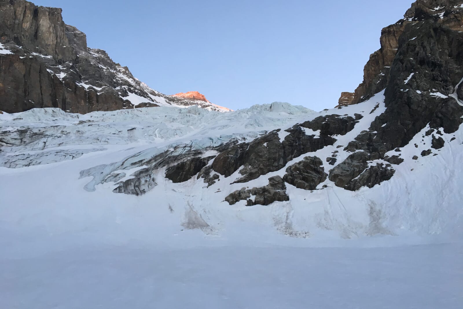 Nach dem stärkenden Frühstück wird die Stirnlampe montiert und los geht diese anspruchsvolle Skitour auf den Tödi. Von der Fridolinshütte durchquert man in südwestlicher Richtung die Moräne auf den Bifertenfirn. Der weitere Aufstieg führt über zwei anspruchsvolle Eisbrüche. Je nach Verhältnissen kann der gesamte Gletscher mit den Skiern begangen werden. Bei Ausaperung im zweiten Eisbruch müssen die Skier gegen Steigeisen getauscht werden. In einem grossen Rechtsbogen geht es nach der Spaltenzone über den Bifertenfirn, der sich wie ein glänzender Teppich vor uns ausbreitet. Wer die "Klagemauer" überwunden hat, kann sich spätestens jetzt über den nahen Gipfel freuen! Das schöne Gipfelkreuz und die fantastische Weitsicht entschädigen für alle Anstrengungen. Die wilde und lange Abfahrt von über 2`800 Höhenmetern führt der Aufstiegsroute entlang und kann die Oberschenkel nochmals ganz schön fordern. Der Tödi, die Königstour schlechthin!