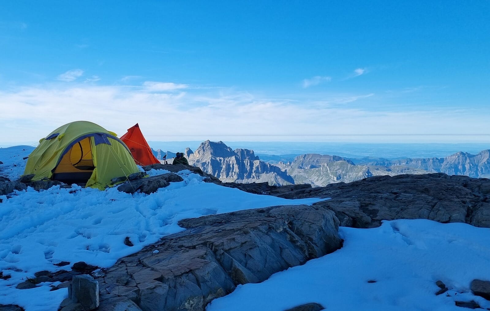 Vom Basislager zum Gipfel ist es nicht so weit, so dass wir etwas gemütlicher in den Tag starten können. Nach dem Frühstück beginnen wir den Aufstieg zum Gross Schärhorn 3296m. Über Firnhänge und einfache Felsen steigen wir auf zum Gipfel. Ein atemberaubender 360 Grad-Blick erwartet dich. Auf unserem Weg via Chammlijoch zurück zum Klausenpass stoppen wir erneut beim Basecamp, bauen die Zelte ab und verstauen sie im Depot. Vom Klausenpass geht es zurück nach Glarus.