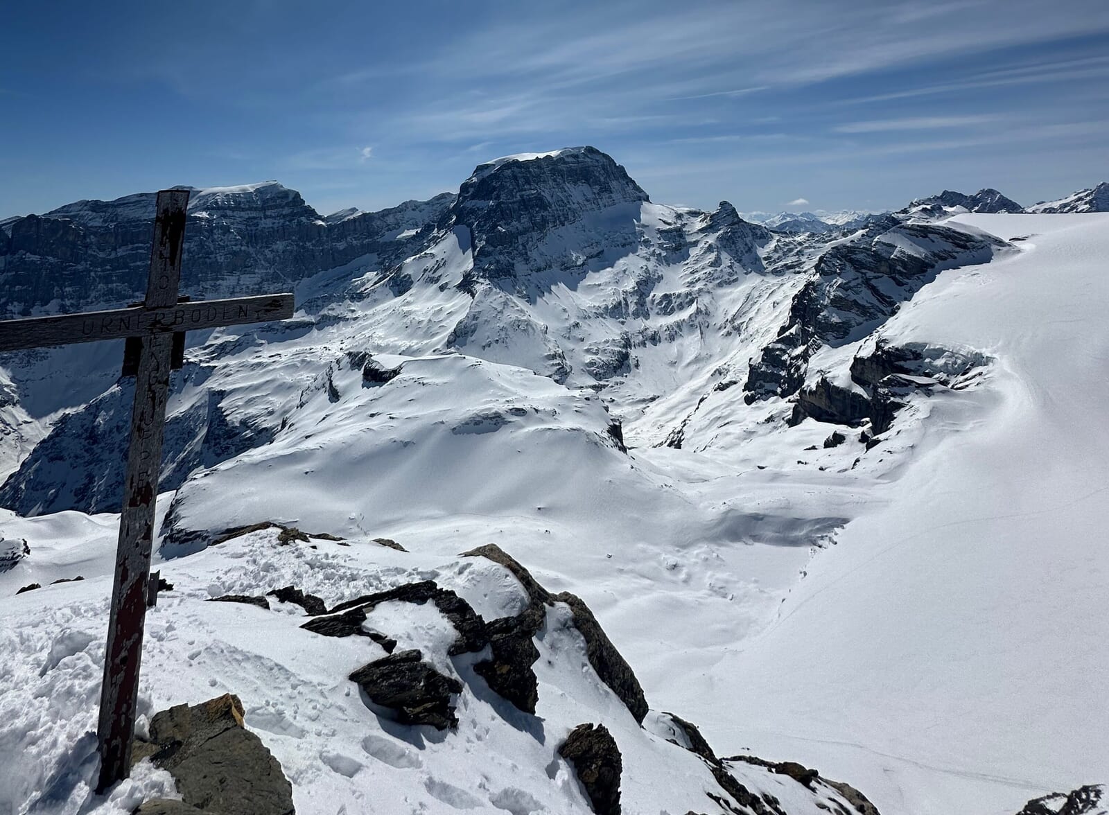 Die herrliche Abschlusstour beginnt mit dem kurzen Anstieg zum Ochsenstock. Die Abfahrt geht nach Ober Sand und die Hänge von Beggen bis zur Beggilücke. Auf dem Claridenfirn entscheidet ihr euch für die, je nach Witterungsbedingungen, beste Variante. Eine Variante ist das "Tüfelsjoch". Der spektakuläre Übergang mit der luftigen Abseilstelle führt zu versteckten Powderhängen auf der Nordseite. Oder ihr geht zurück über den Gemsfairenstock hinunter auf den Urner Boden. Im Anschluss geht es gemeinsam zurück nach Glarus.
