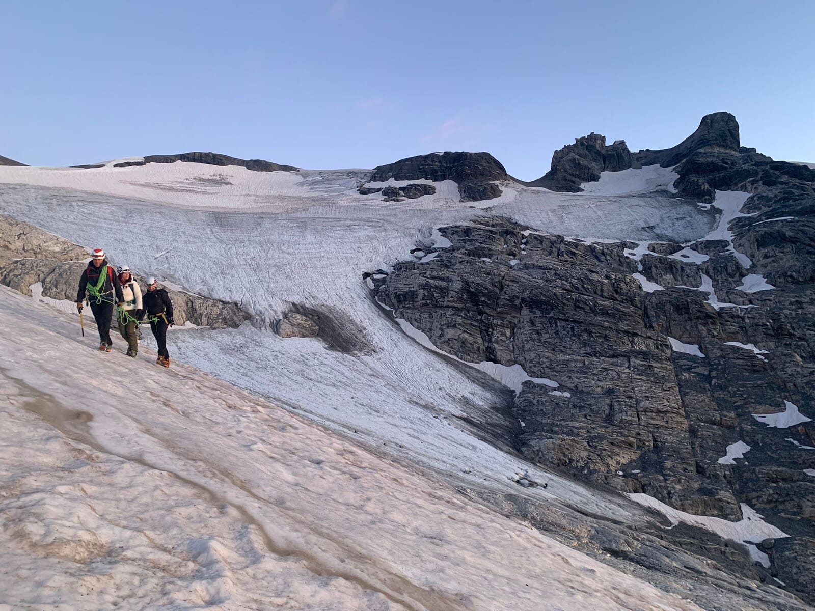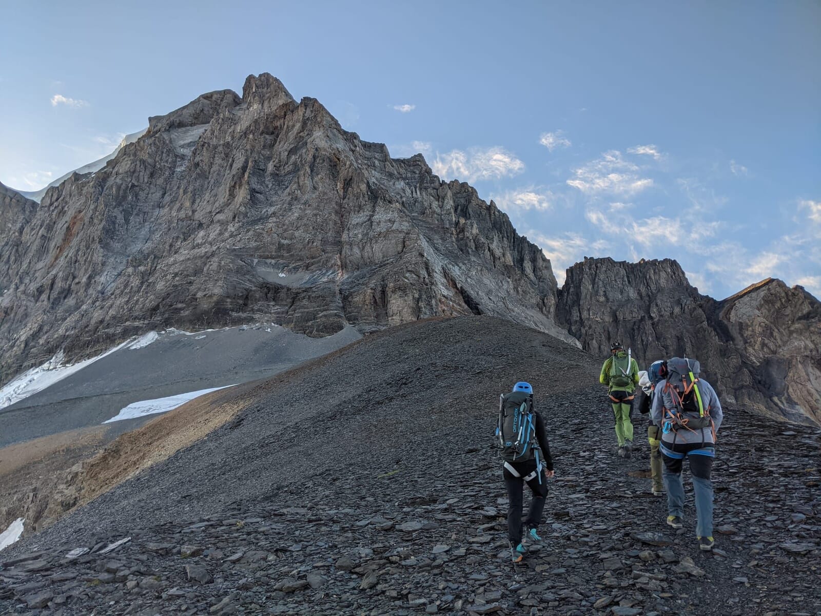 Nach einer kurzen Nacht in der Hütte geht es sehr früh los. Wir steigen in einem grossen Bogen zum Sandpass ab. Am Ende des Grates südlich des Chli Tödi führt uns die Route über steile, schiefrige Geröllhalden bis auf ein Plateau. Nach der Hochebene gelangen wir über ein schmales Band zum Westfuss des Tödi. Weiter geht es über Felsabsätze und steile Firnhalden. Der Weg führt über leicht ausgeprägte Bänder und ist dort mit Sicherungsstangen versehen. Später gelangen wir an eine abschüssige Platte, über welche uns der Weg über den Grat bis hoch zum Gipfel führt. Mit etwas Glück werden wir mit einem gewaltigen Rundumblick bis zum Mont Blanc belohnt. Den Abstieg wählen wir über die Normalroute via Gelbe Wand - Grünhornhütte bis zur Fridolinshütte. Rückreise mit dem Alpentaxi von Hintersand ins Tierfehd.
