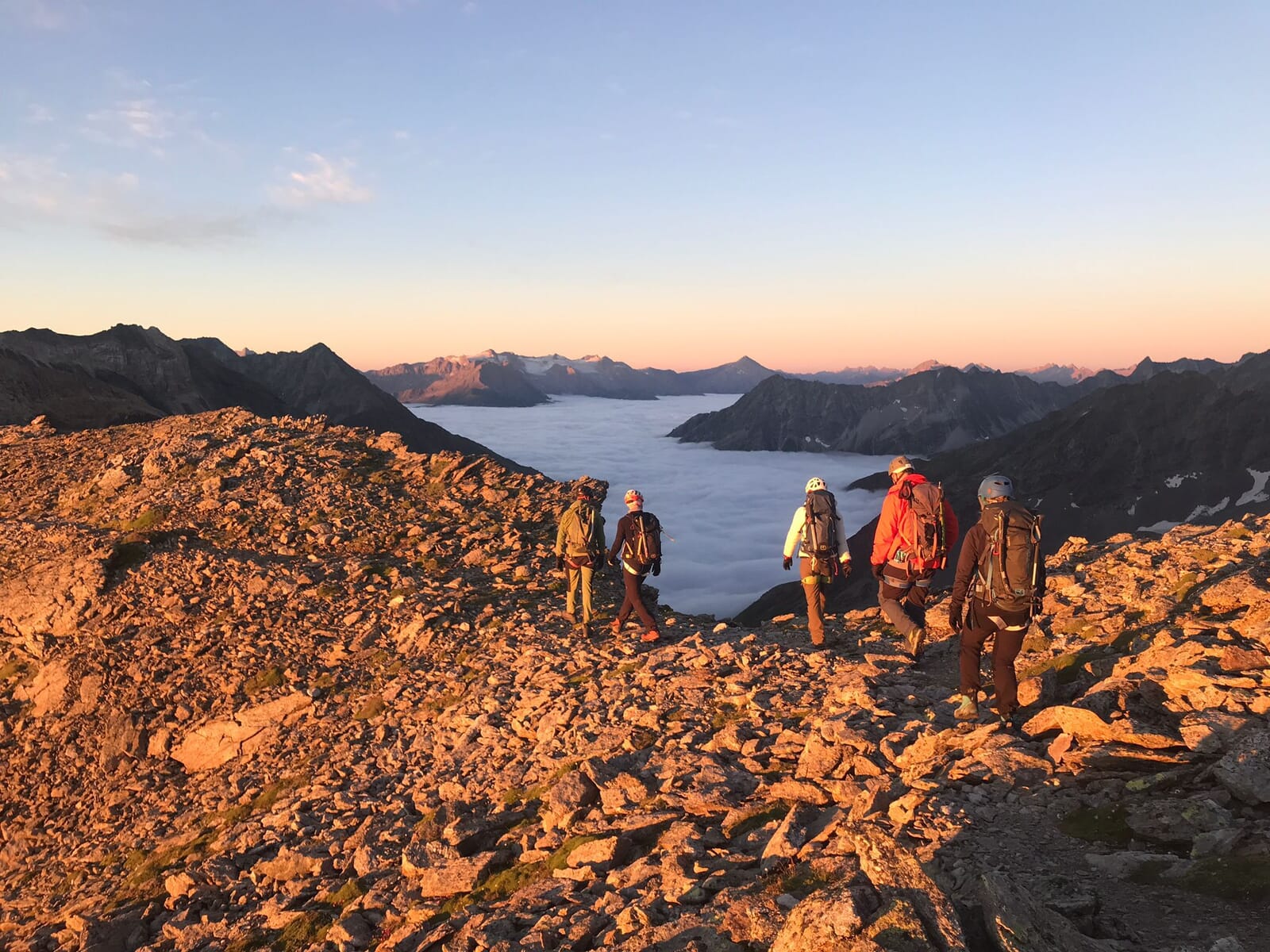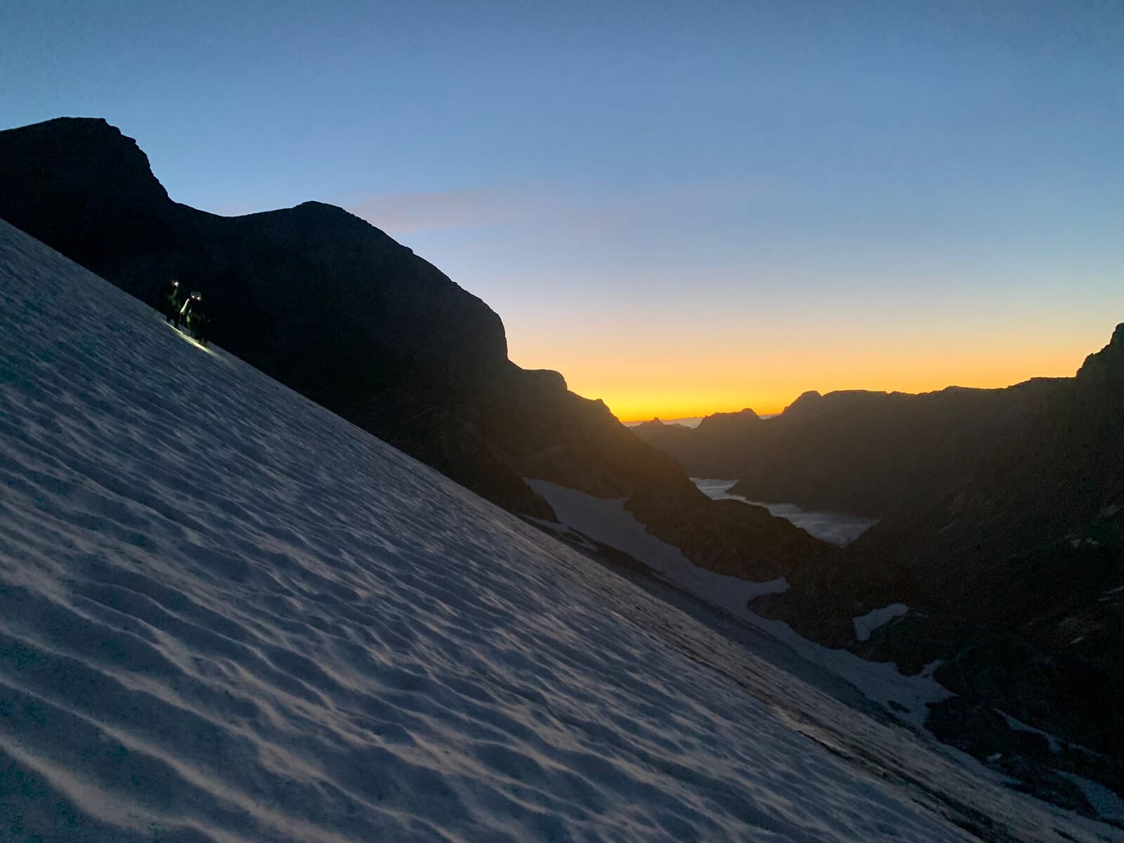 Du bringst bereits einige Hochtouren-Erfahrung mit. Die Benützung von Steigeisen und Pickel ist dir vertraut. Anspruchsvolle und ausgesetzte Routenabschnitte bewältigst du ohne Zögern. Kletterpassagen bis zum zweiten Schwierigkeitsgrad bereiten dir mit und ohne Steigeisen keine Probleme. Zudem ist die Kondition für eine zehnstündige alpine Bergtour gefordert. Idealerweise hast du schon einmal eine Tour mit uns unternommen, damit wir dein Niveau einschätzen können.