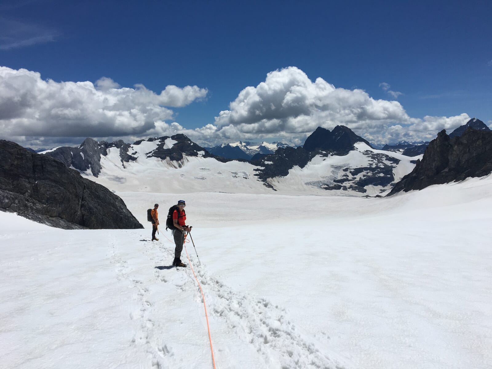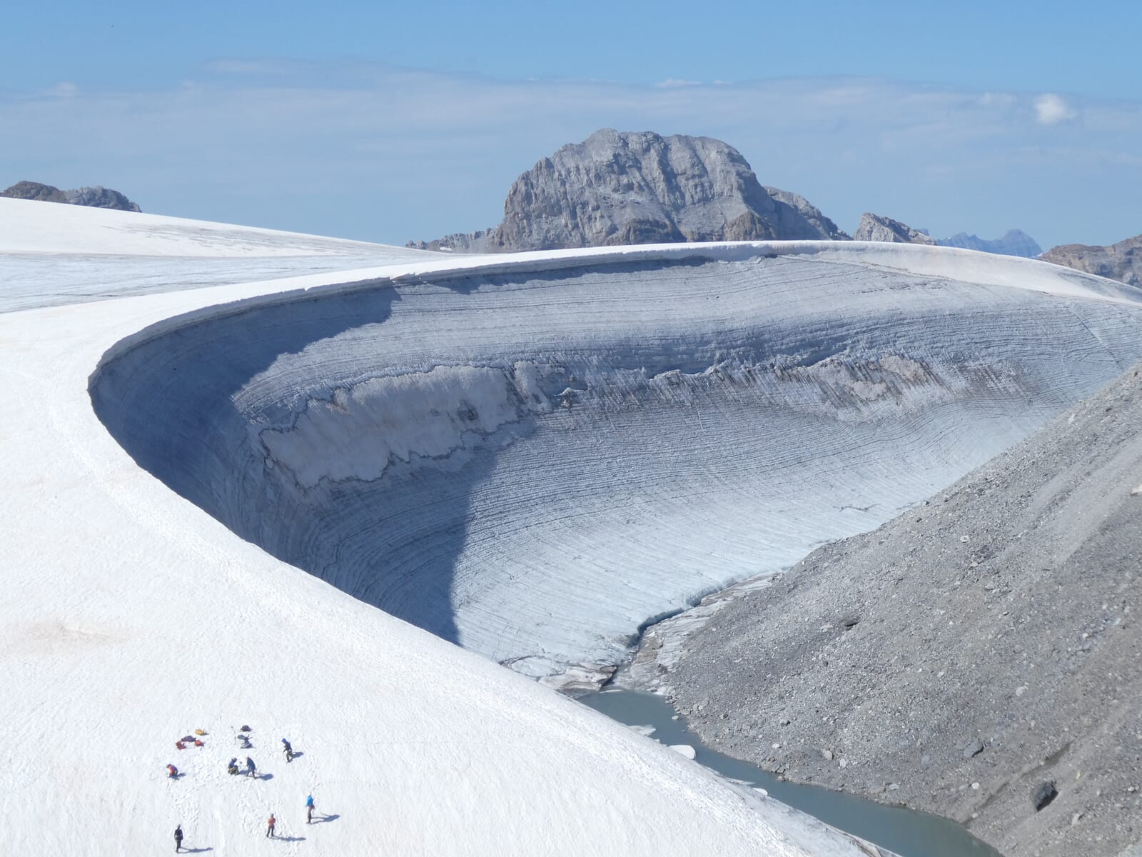 Zubereitung des Frühstücks. Danach wird das Camp abgebaut und das Material versorgt. Anschliessend führt die Gletscherwanderung über den weiten Claridenfirn zur Claridenhütte. Nach ca. 3.5h Gehzeit erreicht ihr die Claridenhütte, in der ihr noch eine Rast zur Stärkung einlegt. Von hier geht es weiter, zuerst steil hinunter nach Geisstein, dann etwas sanfter bis Malor, wo eine herrliche Aussicht auf euch wartet. Im Anschluss kommt ihr zur Fisetenbahn, die euch hinunter zum Urnerboden bringt.