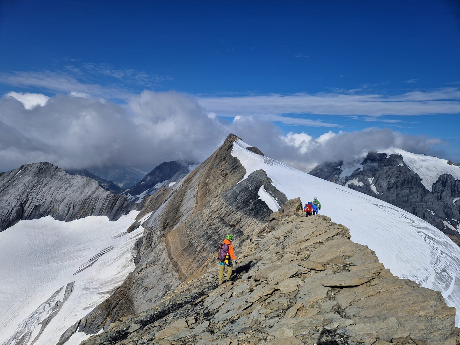 Für die Besteigung des Bifertenstocks solltest du bereits Hochtouren-Erfahrung vorweisen können. Die Benützung von Steigeisen und Pickel sollte dir vertraut sein. Auch anspruchsvollere Abschnitte in Eis, Firn und Geröll bereiten dir keine Sorgen. Zudem ist die Kondition für eine zehnstündige alpine Bergwanderung gefordert. Du solltest schwindelfrei sein und ausgesetzte Kletterpassagen bis zum 3. Schwierigkeitsgrad meistern. Idealerweise hast du schon einmal eine Tour mit uns unternommen, damit wir dein Niveau einschätzen können.