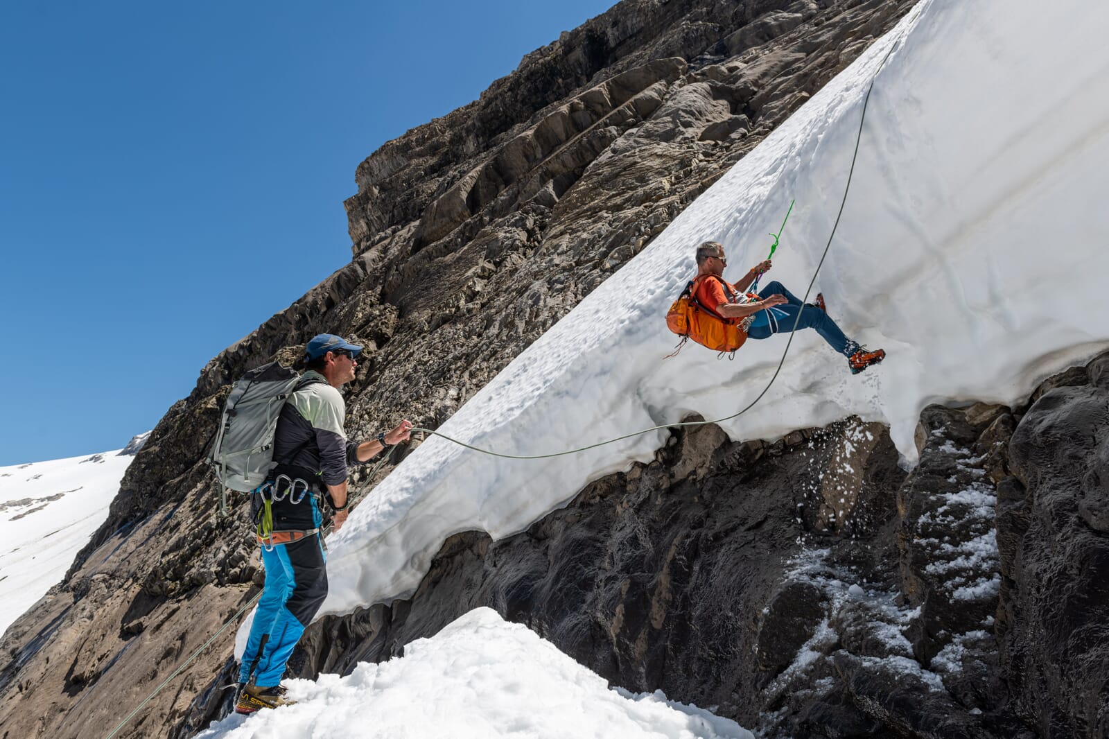 Du hast erste Hochtourenerfahrung gesammelt und Erfahrung beim Steigeisengehen. Kleine Passagen in Eis, Schnee und Geröll bewältigst du trittsicher und in unwegsamem Gelände fühlst du dich wohl. Zudem ist die Kondition für eine achtstündige alpine Bergwanderung gefordert.