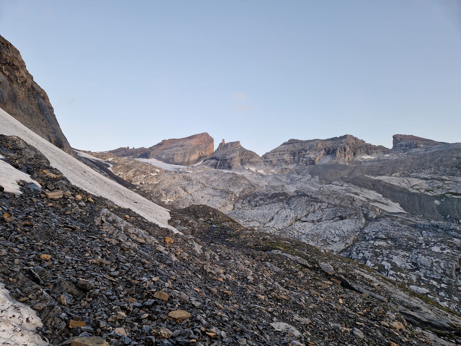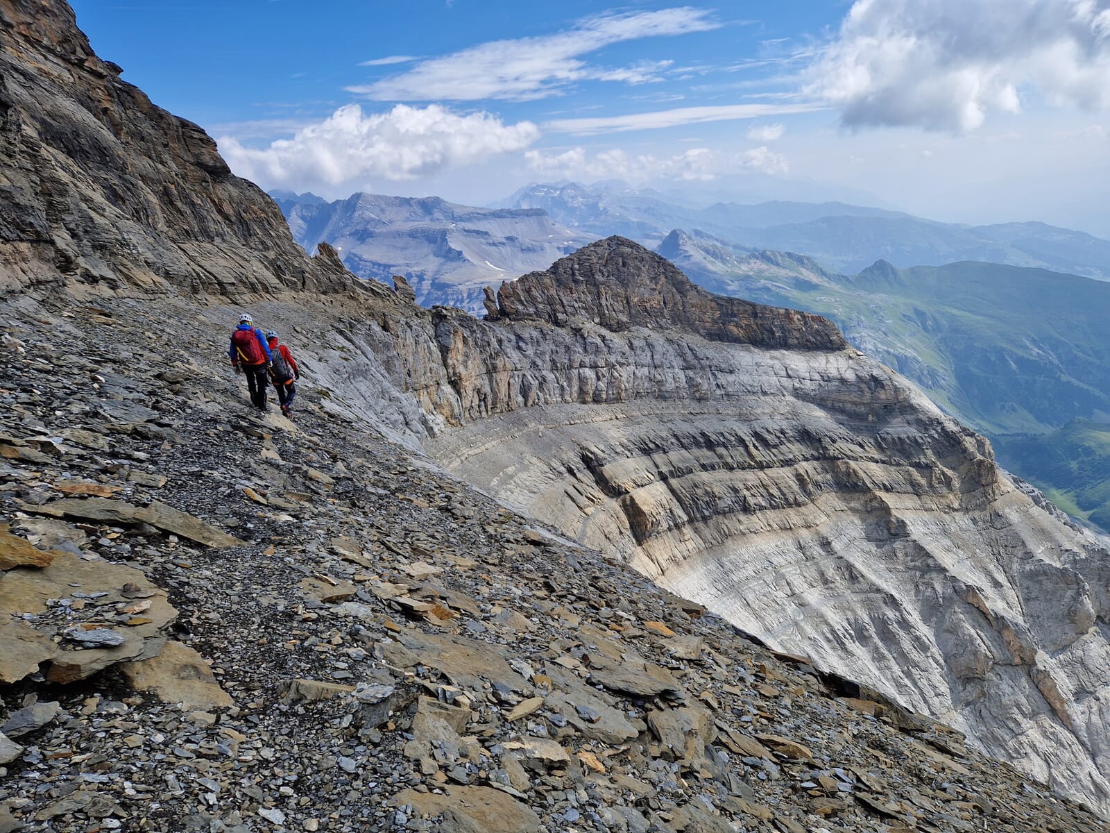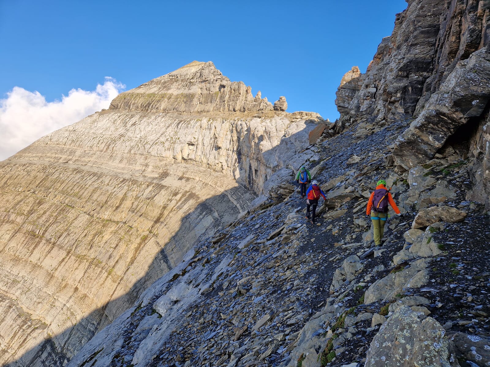 Früh morgens startet ihr im Licht der Stirnlampen und wandert Richtung Limmerenpass. Nach etwa 1.5 Stunden erreicht ihr den Einstieg in den Bänderweg und erblickt erstmals die imposanten Felstrichter. Ein teilweise geröllbedecktes Band verläuft praktisch durch die ganze Südwand des Bifertenstocks. Über steile Platten (Eisenkette) geht es nun auf den Ostgrat, entlang der Firnschneide weiter bis zum Gipfel. Eine überwältigende Weitsicht erwartet dich. An klaren Tagen kann man sogar den Mont Blanc im Westen erkennen. Der Abstieg erfolgt über den Bänderweg zurück zum Limmerenpass. Nach einer ausgiebigen Mittagsrast in der Bifertenhütte, geht es weiter auf den Weg zur Kistenpasshütte. Aufgrund der spektakulären Lage hoch über dem Limmerensee bietet sie atemberaubende Tiefblicke und beeindruckende Sonnenuntergänge.