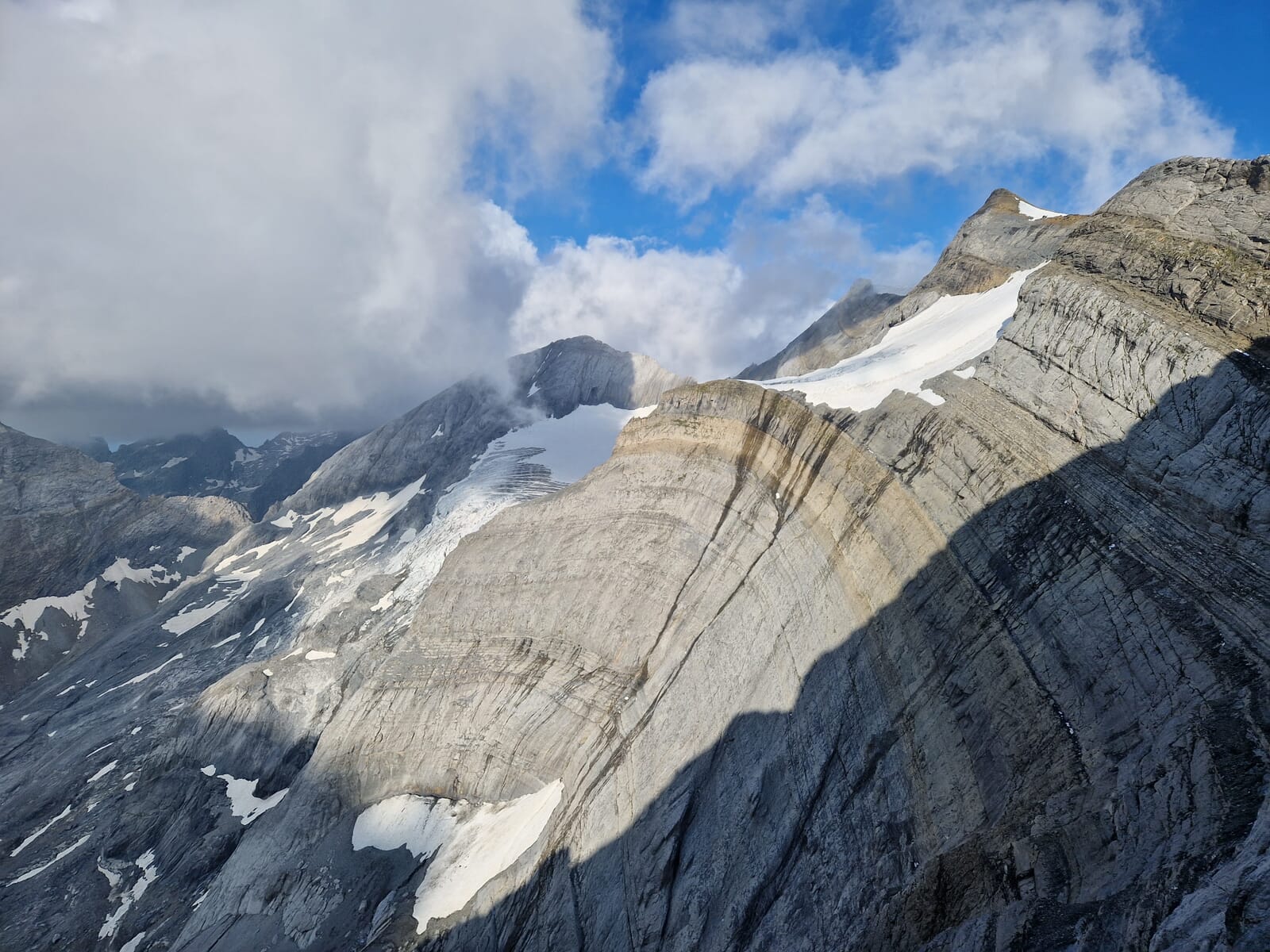 Zwei Gipfel, zwei ganz unterschiedliche Charaktere. Der Bifertenstock mit seinem spektakulären Bänderweg sucht seinesgleichen. Steht man am Beginn des Bandes am ersten Kessel, so benötigt man einen Moment, bis man die Dimensionen erfassen kann. Einmal unterwegs auf dem exponierten und stellenweise sehr luftigen Bänderweg fällt der Blick über abschüssige Kalkplatten direkt ins wilde Val Frisal und verschlägt einem fast den Atem. Die letzten Meter über ein steiles Schneefeld und eine mit einer Kette und Stiften gesicherten Platte führt auf den Ostgrat. Auf dem Gipfel wirst du mit einer grandiosen Aussicht zum Tödi, dem Selbsanft und in der Ferne allen namhaften Gipfeln des Alpenbogens belohnt. Der Hausstock hingegen zählt durch die Kombination aus Gletscher, Grat und Aussicht zu den beliebtesten, aber nie überlaufenen Zielen im Glarnerland.
