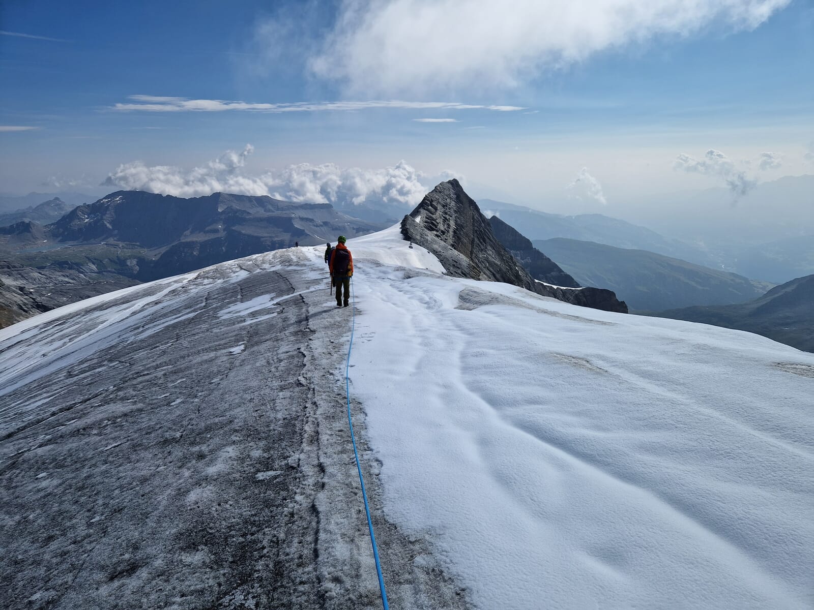 Für diese Dreitageshochtour solltest du bereits Hochtouren-Erfahrung vorweisen können. Anspruchsvolle Abschnitte in Eis, Firn und Geröll bereiten dir keine Sorgen. Du hast Erfahrung im weglosen, ausgesetzten Gelände. Du solltest schwindelfrei sein und ausgesetzte Kletterpassagen bis zum 3. Schwierigkeitsgrad meistern können. Du brauchst Kondition für eine zehnstündige alpine Bergwanderung. Idealerweise hast du schon einmal eine Tour mit uns gemacht, damit wir dein Niveau gut einschätzen können.