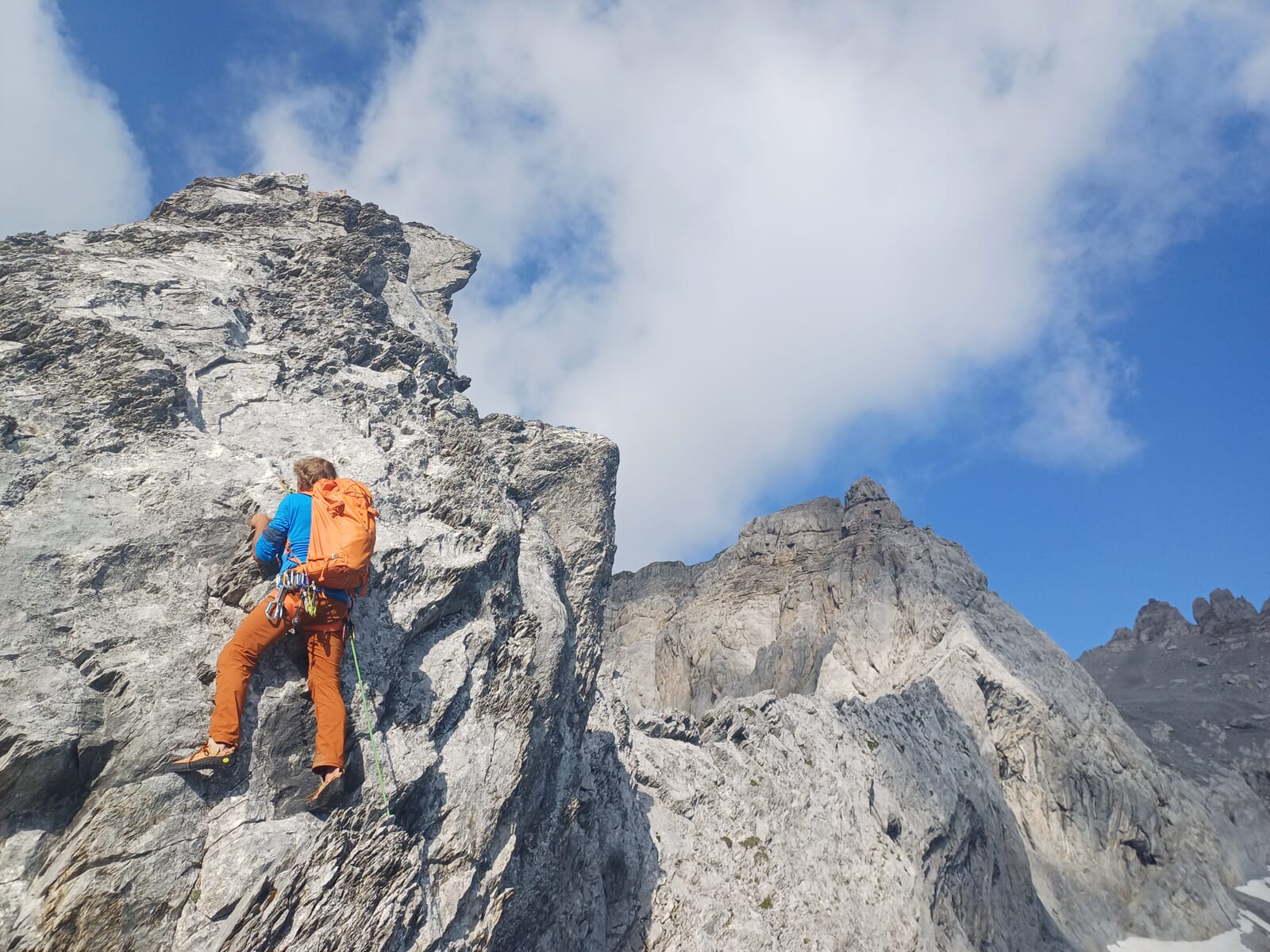 Die Tour ist bestens für Personen geeignet, die ihre ersten Erfahrungen in Grat- und Hochtouren sammeln möchten. In meist festem Kalk liegt die Tour mit maximal 4b in einem angenehmen Bergschuh-Niveau. Du hast erste Bergtouren-Erfahrung gesammelt. Kleine Passagen im Geröll bewältigst du trittsicher und in unwegsamem Gelände fühlst du dich wohl. Das Klettern an senkrechten und ausgesetzten Felswänden ist kein Neuland für dich. Du brauchst Kondition für eine siebenstündige Bergwanderung. Optimalerweise bist du schon einmal mit uns unterwegs gewesen, damit wir dein Niveau gut einschätzen können.